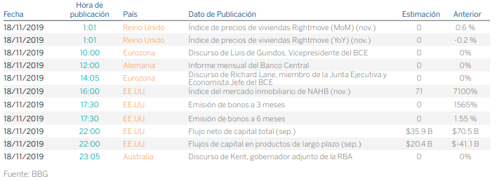 En el mercado de divisas, asistimos a un mejor comportamiento de la divisa comunitaria frente al billete verde con el par euro/dólar en 1,1052. En el mercado de crudo, el Brent (+1,81%) registró elevadas subidas y alcanzó los 63,41 dólares por barril.
