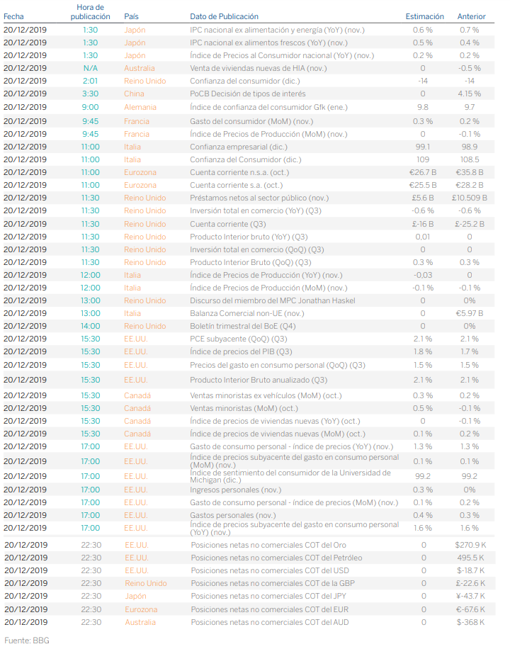 En el mercado de divisas, el par EUR/USD (+0,10%) negoció en 1,1127. El billete verde se depreció respecto a la divisa común al incrementarse la inestabilidad política derivada del impeachment contra Donald Trump. En el mercado de crudo, el Brent (+0,60%) subió acercándose cada vez más a los 66 dólares por barril.gracias al empuje de los máximos históricos de la bolsa estadounidense.