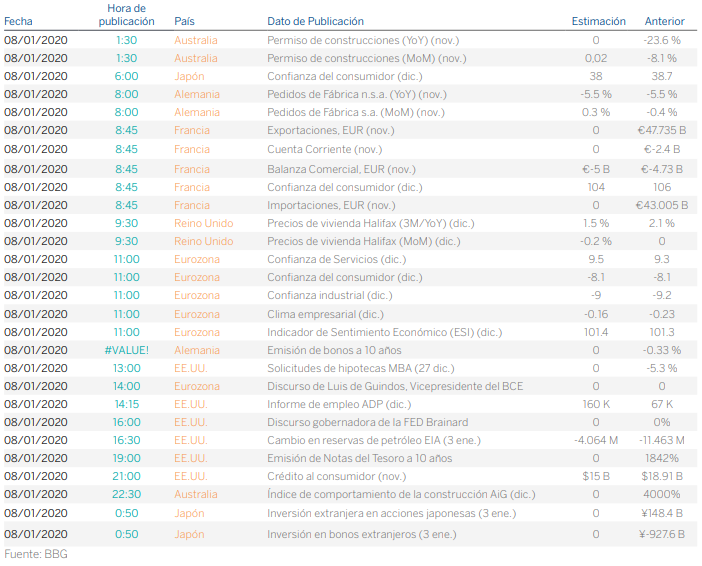 Respecto a los datos macroeconómicos destacaron el repunte del 1% (vs +0.7% esperado por el consenso de analistas) en las ventas minoristas de la eurozona así como el IPC diciembre que se alineaba con lo esperado en el conjunto de la eurozona. En EE.UU. destacó el ISM no manufacturero que alcanzó finalmente los 55 puntos.