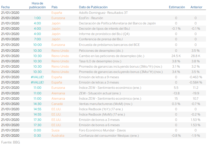El clave política conocimos que EE.UU. firmaba con Francia una tregua comercial hasta finales de año. El FMI en el foro económico de Davos bajaba las previsiones de crecimiento para España hasta el 1.6% tanto para 2020 como 2021.