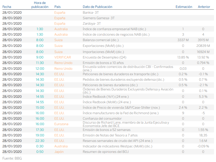 La extensión de casos de infectados por el coronavirus de Wuhan tanto dentro como fuera de las fronteras de China, unido al cambio de valoración de la OMS que ha calificado la amenaza como "alta" han aumentado la aversión al riesgo de los inversores, lo que se ha visto reflejado en los mercados del viejo continente con caídas significativas así como en EE.UU. si bien estas últimas de menos magnitud. Las aerolineas y los sectores relacionados con el ocio y el turismo fueron los sectores más afectados de la sesión.