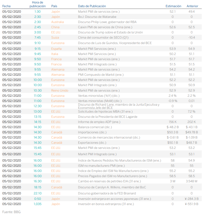 Los menores temores asociados a la expansión del coronavirus de Wuhan así como la expectativa de su impacto limitado y transitorio derivado de los estímulos monetarios y fiscales en las principales economías mundiales, impulsaron las bolsas a ambos lados del Atlántico con mejor comportamiento de los índices tecnológicos, entre los que volvió de demostrar su fortaleza el Nasdaq-100 (+2,28%) marcando nuevos máximos históricos. En Europa destacó el mejor comportamiento de los sectores cíclicos.