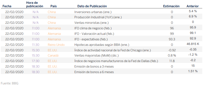Hoy se presenta la jornada de forma no muy positiva, con caídas generalizadas en las bolsas asiáticas sobre todo en Corea del Sur, tras confirmarse nuevos casos de infectados por el coronavirus. La bolsa de Tokio permanece cerrada por festivo del cumpleaños del Emperador. En Europa especialmente destacable las caídas en los futuros en los principales índices antes de la apertura dadas las noticias que nos llegan Italia y los renovados miedos por la expansión del virus de China.