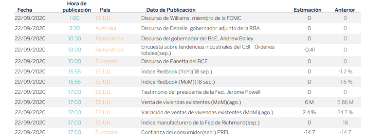 La incertidumbre volvió a los mercados globales en la sesión de ayer y con ella la aversión al riesgo. El deterioro de la situación sanitaria, el retraso en la aprobación de ayudas frente al Covid en EE.UU. unido a la inestabilidad política por las elecciones norteamericanas y el Brexit provocaron grandes correcciones bursátiles sobre todo en el Viejo Continente cuyas pérdidas alcanzaron el-3% en promedio, con peor comportamiento relativo del alemán DAX 30 (-4,37%). En EE.UU. vimos pérdidas más moderadas, destacando en el lado negativo el Dow Jones (-1,84%), seguido del S&P 500 (-1,16%) mientras que el Nasdaq 100 (+0,40%) conseguía cerrar en positivo dado el mejor comportamiento de los sectores defensivos.