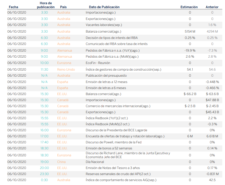Ayer tuvimos varias referencias macroeconómicas muy relevantes. En Europa destacó el PMI de servicios español que se hundió en el mes de septiembre, al registrar una lectura de 42,4 puntos, frente a los 46,2 esperados y los 47,7 puntos del mes de agosto. La segunda ola de COVID- 19 ha hecho mucho daño a las expectativas del sector servicios, llevando al PMI compuesto hasta los 44,3 puntos, muy por debajo de lo esperado. La lectura en Italia, que ha controlado mejor la pandemia, compensó la decepción española, con un dato del PMI compuesto de 50,4 puntos, frente a los 49,2 que esperaba el consenso. Del mismo modo, una revisión al alza del dato alemán permitió al PMI compuesto de la eurozona recuperarse desde los 50,1 puntos de la lectura preliminar a los 50,4 puntos actuales. En otro orden de cosas, las ventas minoristas de agosto en la eurozona sorprendieron con un sólido repunte del 4,4%, muy por encima del 2,2% anticipado. Par a terminar, la confianza del inversor en la eurozona se situó en los -8,3 puntos en septiembre, marginalmente por debajo de la lectura de agosto, pero excediendo también las previsiones del consenso.