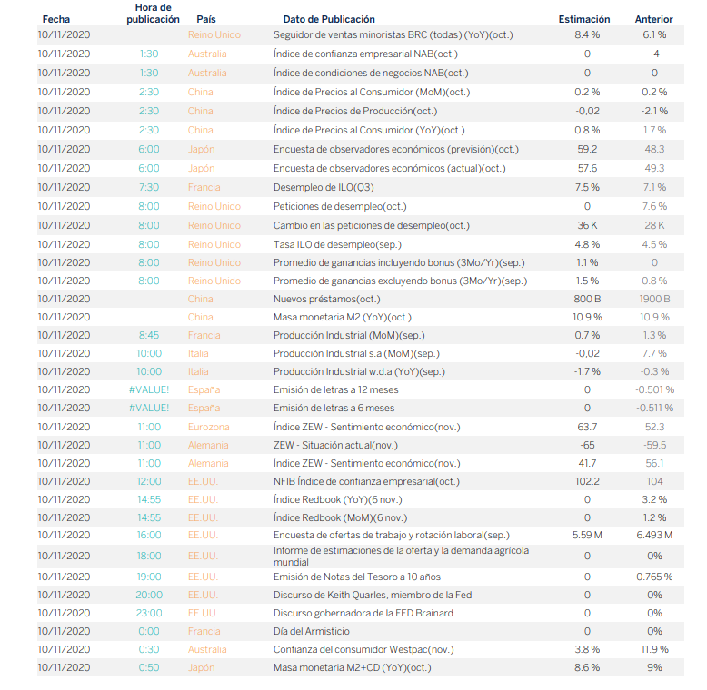 Jornada de euforia en la renta variable mundial en la sesión de ayer en la que la aversión al riesgo volvió a los mercados. La victoria de Joe Biden como Presidente de EE.UU. unido a los nuevos avances en las vacunas contra el Covid-19, impulsaron las bolsas a ambos lados del Atlántico.