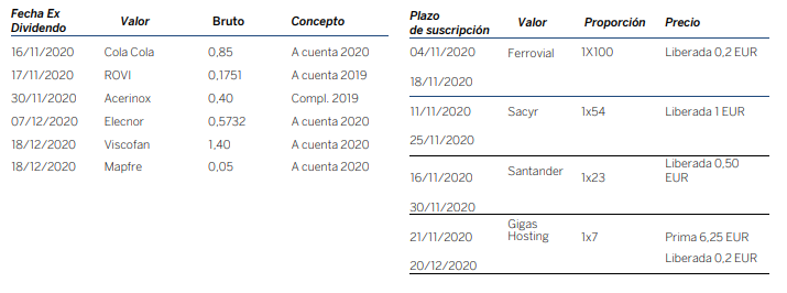 Próximos dividendos y ampliaciones de capital