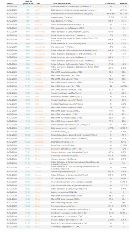 Las bolsas de Wall Street recuperaron las pérdidas de las últimas jornadas ante la expectativa de alcanzar un acuerdo sobre el estímulo fiscal en EE.UU. antes de terminar el año. El comportamiento sectorial estuvo liderado de nuevo por los cíclicos. El S&P 500 (+1,30%) acumulaba las mayores ganancias, seguido del Dow Jones (+1,13%) y del tecnológico Nasdaq 100 (+1,07%).