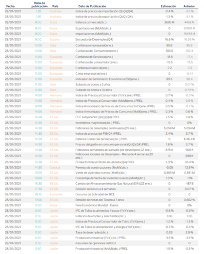 En el Viejo Continente las caídas también fueron intensas pero de menor magnitud, alimentadas por el retraso en la campaña de vacunación contra el Covid-19. En la jornada de ayer destacó el peor comportamiento relativo del alemán DAX 30 (-1,81%).