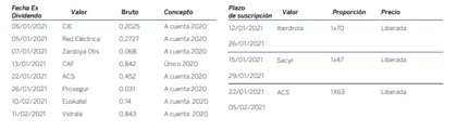 Próximos dividendos y ampliaciones de capital