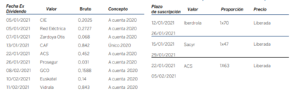Próximos dividendos y ampliaciones de capital