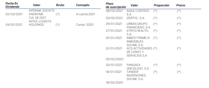 Próximos dividendos y ampliaciones de capital