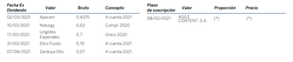 Próximos dividendos y ampliaciones de capital