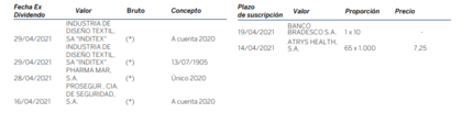 Próximos dividendos y ampliaciones de capital