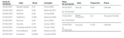 Próximos dividendos y ampliaciones de capital
