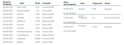 Próximos dividendos y ampliaciones de capital