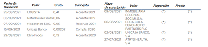 Próximos dividendos y ampliaciones de capital