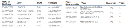 Próximos dividendos y ampliaciones de capital