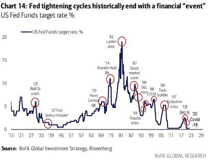 En este contexto, no obstante, es obligación de todos analizar las probabilidades de los distintos sucesos que nos pueden sorprender en este nuevo 2022. Es por esto que empezamos observando este gráfico del BofA sobre los periodos de restricción monetaria y el impacto en los mercados desde una perspectiva histórica existiendo, según el mismo, una causa- efecto claro. Mientras algunos analistas hablan de que lo realmente importante es la “velocidad” de las subidas de tipos, lo cierto es que el actual momento de altas valoraciones, los peligros de la inflación y la magnitud del crecimiento, son factores a tener en cuenta junto al inicio de la política monetaria restrictiva. Así pues, analicemos muy de cerca los flujos, el impacto de este ajuste y la capacidad de las empresas por seguir generando dinero en 2022.