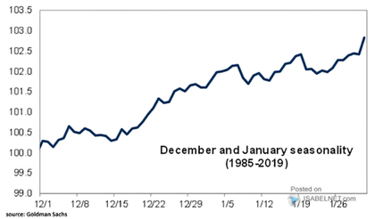 Desde un punto de vista estacional, los meses de diciembre y enero suelen ser positivos para el S&P500 como muestra el siguiente gráfico.