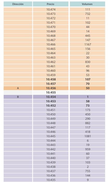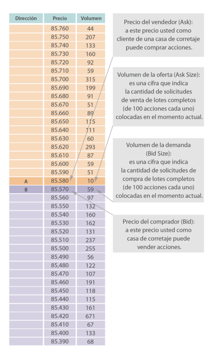 En otras palabras, cada momento en la bolsa de valores, en cualquier tipo de valores, se colocan una gran cantidad de órdenes (o pedidos) para la compra y venta según una gran variedad de precios. Todas estas peticiones existen en un estado pasivo, ya que para ellas la transacciones no son ejecutadas.