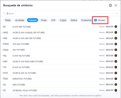 En la siguiente imagen se pueden ver como se visualizan en TradingView los contratos disponibles en iBroker