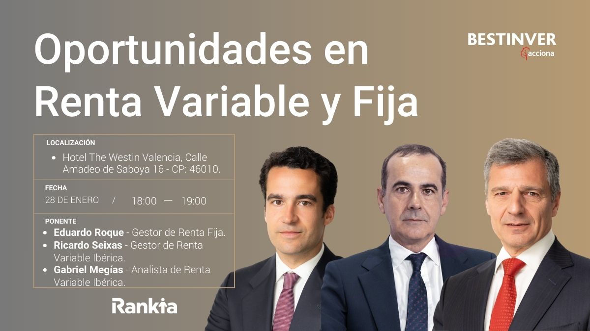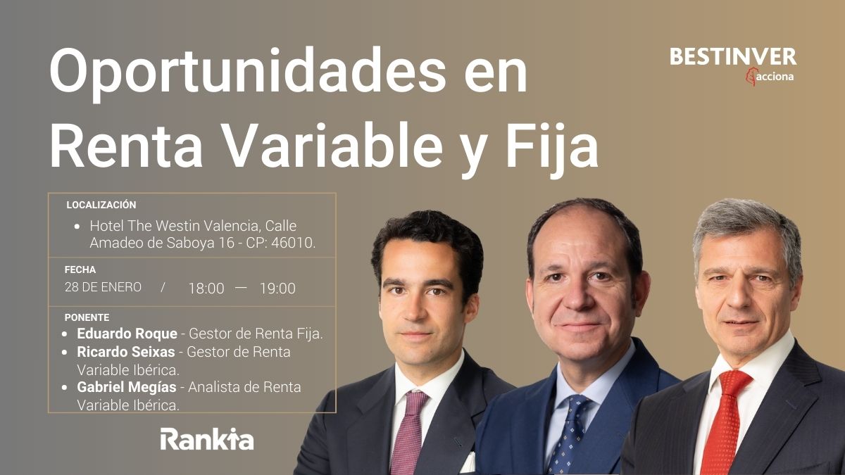 El miércoles 28 de enero a las 18:00h tendrá lugar esta conferencia donde Eduardo Roque, Director de Renta Fija y Ricardo Seixas, Director de Renta Variable Ibérica, compartirán su visión y análisis profundo sobre las oportunidades de inversión tanto en el mercado de renta fija como en el de renta variable Ibérica.