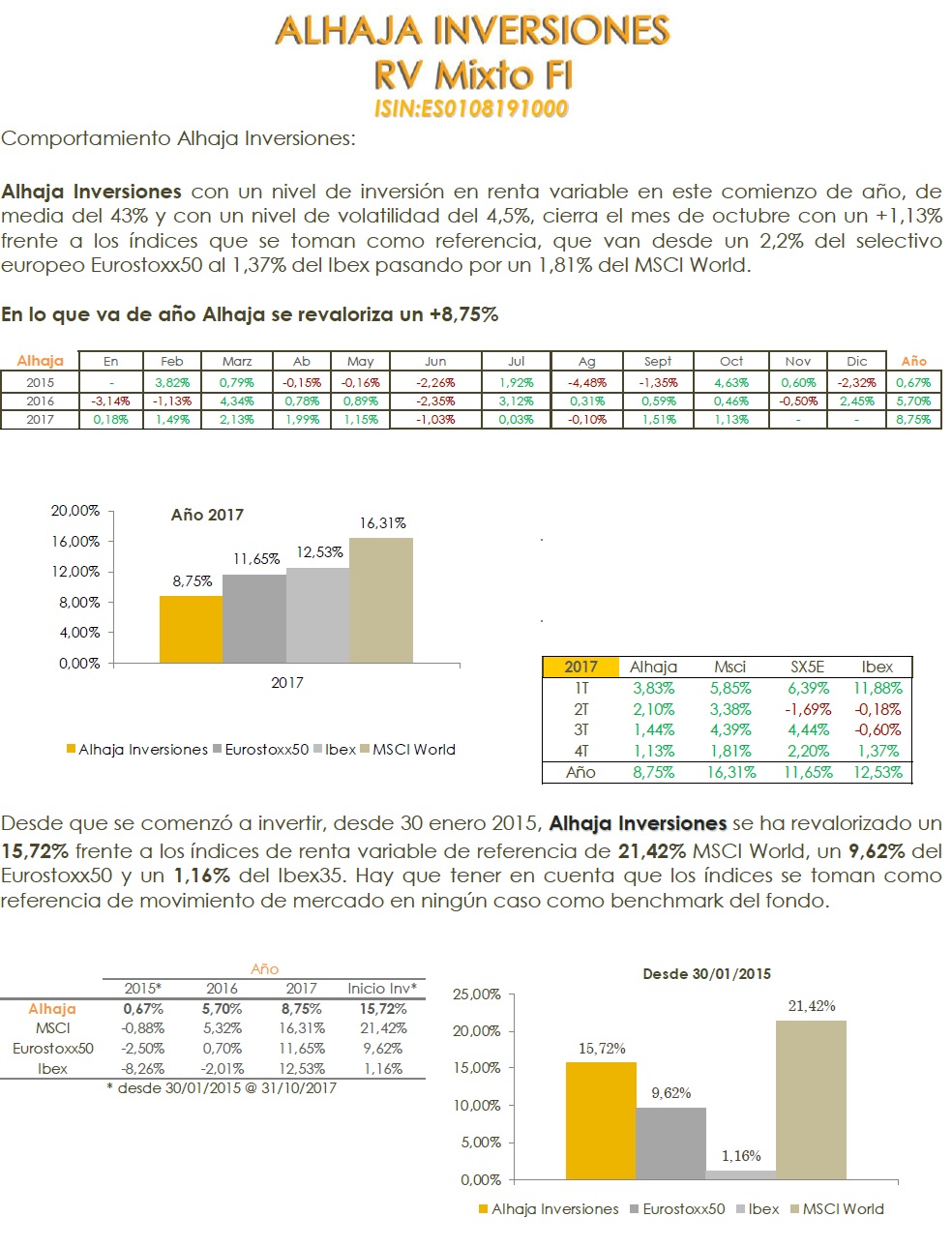 Para una profundización en la visión de mercados 2018 y evolución de Alhaja os espero en el Webinar del 21 nov. https://www.rankia.com/cursos/1261-paso-meta-2017-vistas-objetivo-2018