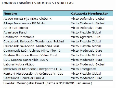 Alhaja Inversiones cinco estrellas Morningstar a cierre octubre 2018. Después de un tormentoso octubre Alhaja dentro de los 14 fondos mixtos españoles con 5 estrellas Moningstar.