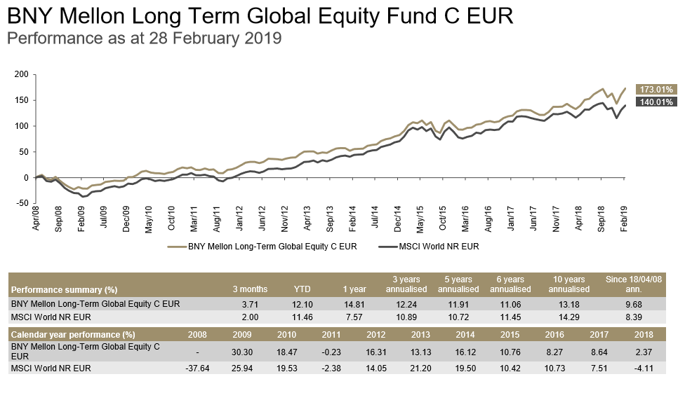 Este fondo nació en 2008, un año que como todos sabemos fue para olvidar, en el que el MSCI World llegó a perder más de un 37%. Desde su lanzamiento, el 18 de abril del 2008, el fondo ha ofrecido una rentabilidad del 9,68% anualizada, frente al 8,39% del MSCI World NR EUR (a 28 de febrero del 2019).