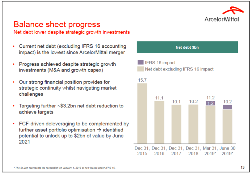 La propia empresa ha informado de estos riesgos a corto plazo que están llevándoles a reajustar tamaño a la nueva situación- no es la primera vez ni la última que deban hacerlo- y también informan de que, pese a ello, la situación financiera de la empresa es robusta y que gran parte de los negativos resultados contables han sido debido a la reciente adquisición de ArcelorMittal Italia y a los ajustes en EEUU e, incluyendo todo, han logrado reducir el endeudamiento al menor nivel desde la fusión entre Arcelor y Mittal Steel hace ya unos cuantos años.