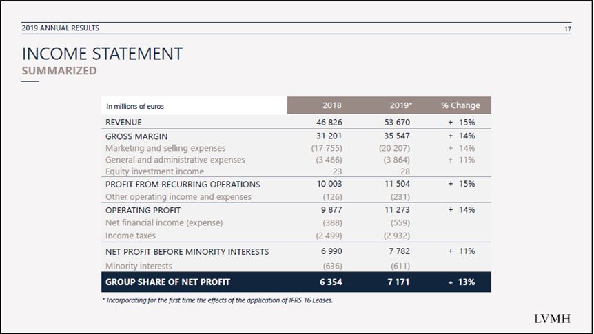 Evidentemente, trabajar y ser la líder del sector lujo implica que a poco que hagan bien las cosas, los resultados vienen después en forma de amplios márgenes. Y claro, LVMH es una empresa que sabe hacer muy bien su trabajo.