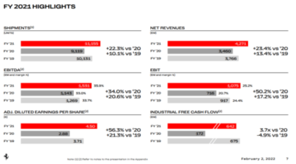 Aunque a futuro no estoy asumiendo, desde luego, esos crecimientos anuales de los últimos años de EBIT o beneficios (pues el mercado no nos la está ofreciendo tan barata como nos gustaría), sí creo que su crecimiento a medio y largo plazo puede rondar niveles relativamente cercanos, tanto derivados de su propio potencial de incrementar gama de productos (este año lanzará el vehículo más esperado del año, el primer SUV de Ferrari, aunque no les gusta que se le denomine “SUV”: el Ferrari Purosangue que aparecerá a finales del 2022), la capacidad para subir precios bastante por encima de la inflación, la entrada en nuevos mercados- actualmente más de 60-, y por supuesto, la llegada de nuevos ricos ansiosos por disponer de su primer Ferrari salido de las factorías mágicas de Maranello.