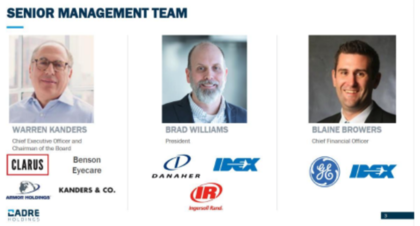 Si os fijáis, tenemos a Warren Kanders quien es miembro destacadísimo de CLARUS, una de nuestras empresas. Y Kanders está en proceso de realizar con CADRE HOLDINGS la misma operación que, en su día, ha logrado con Clarus. Básicamente transformar una empresa buena pero de un tamaño relativamente pequeño en un nicho de mercado, en una empresa mucho mejor, con mayores márgenes, mayores beneficios, y un mayor tamaño tanto por el propio crecimiento orgánico como por el crecimiento inorgánico. Clarus ha sido un éxito para el Argos- gracias a un argonauta y amigo, Dani- y espero que CADRE sea también una estupenda incorporación a nuestra nave.