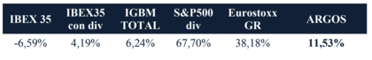 La siguiente tabla compara el valor liquidativo del Argos con los principales índices: