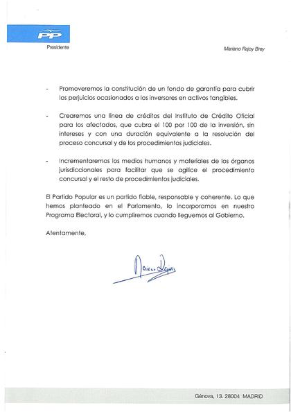 Aqui la carta firmada por Rajoy. A que se comprometía realmente?