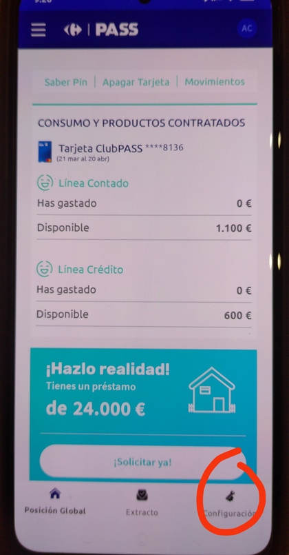 #136 Re: Tarjeta Carrefour Pass Ver mensaje de Aprendiz76 Top 100 piqueras Seguir 27/03/26 07:33 Y aqui los pantallazos desde la APP 1 Responder