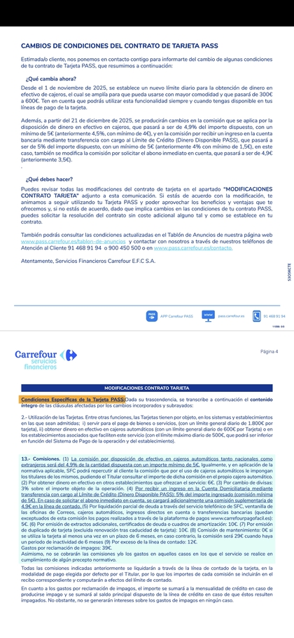 #76 Re: Tarjeta Carrefour Pass Ver mensaje de Sharkness Enrique454 Seguir 30/10/25 18:05 Nada. Aumento de comisiones por disposiciones de efectivo, si se le ocurre a algún insensato. 2 Responder