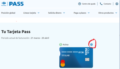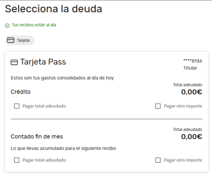 Tienes también que tener en cuenta que el ciclo de facturación de la Pass no se corresponde con el mes natural, yo hora tengo el actual del 21 de marzo al 20 de abril, por lo que todo lo que aparezca como gasto es ese periodo lo puedes liquidar por bizum mediante pago fa.cil