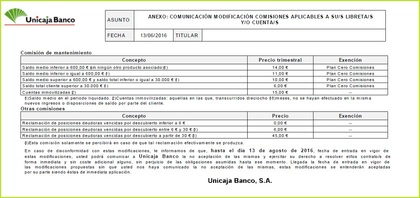 UNICAJA sede física, sin tarjetas.. comisión trimestral 8e, y ahora 10e....