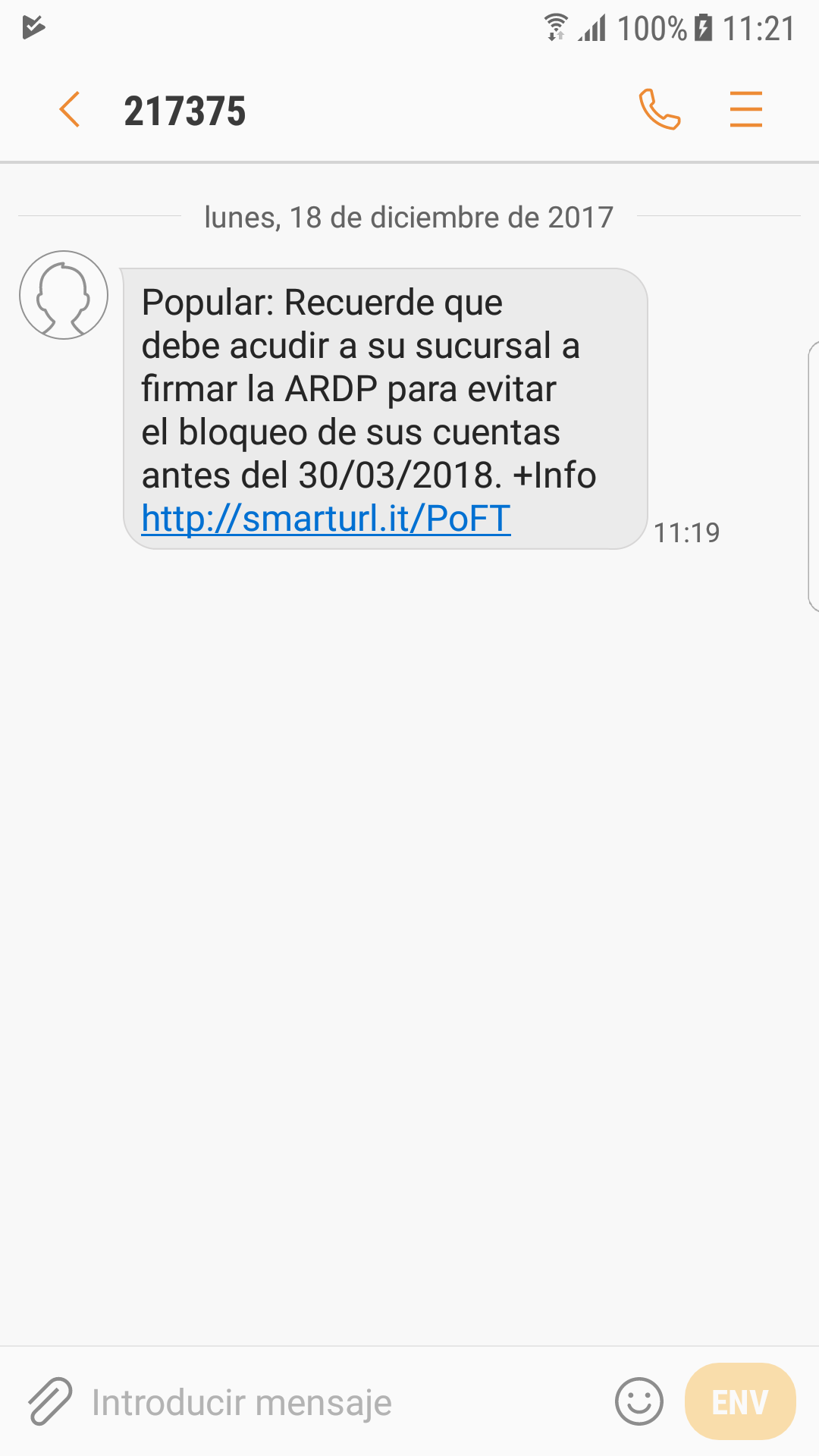 Mensaje recibido ahora mismo del popular