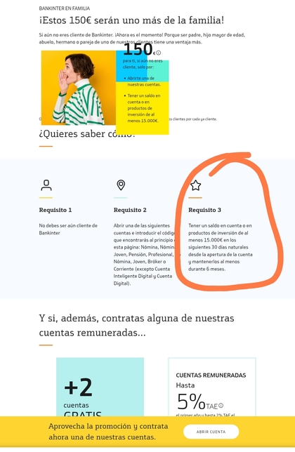 Si quieres aprovechar la oferta del código familia tienes que poner 15.000€ durante 6 meses. Los 10.000€ de la promoción del 5% y 5.000€ más. Pero los 5.000€ euros los podrás sacar a los seis meses y te da más rentabilidad que el 5%. Es una promoción muy buena.