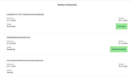 Yo acabo de hacerla hoy y me aparece inscrita. Lo que no veo es la promo de recibos. En cambio el mes pasado abrí la de mi mujer y creo que apunté las dos promos y entro en su perfil y justo son las que no aparecen, están sólo las NO inscritas.