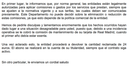 Ojo porque me dicen en la respuesta que la tarjeta es gratis el primer año. Que, según las condiciones, es gratis siempre, pero entiendo que piensan clavarla de nueva en 12 meses.
