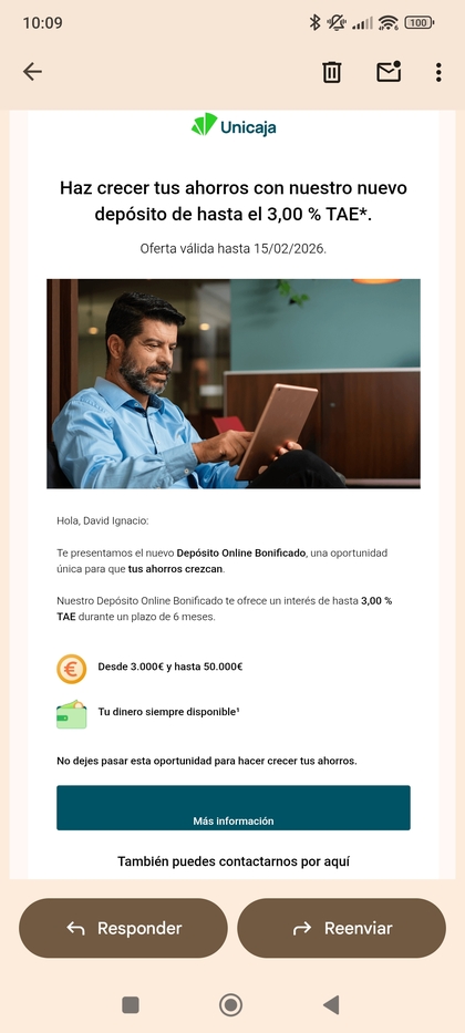 Este depósito, hasta ahora, lo han ido renovando. Y creo que las personas que habían recibido el correo de oferta, lo volvieron a recibir tras cada prórroga.