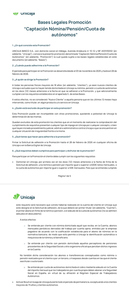 Yo vi la promoción y como ahijado recibes , 350€ o 450€ brutos a depender del valor de la nómina , a mí no me sale la promoción de nómina en mi app Unicaja