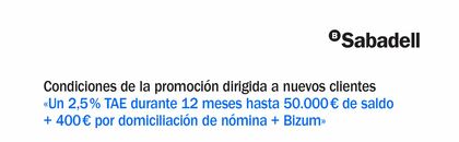 3. Condiciones de la promoción de remuneración de cuenta Por dar de alta la Cuenta Online Sabadell en el período de vigencia de la promoción, podrán obtener una rentabilidad del 2,5 %TAEdurante 12 meses sobre un importe de saldo máximo de 50.000 €.