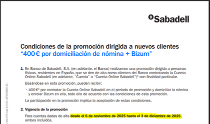 Re: Promoción Cuenta Online Sabadell. 300 €, 2,5% TAE y 3% en recibos. ¡FIN DE PROMOCIÓN! Hasta el 31/01/25