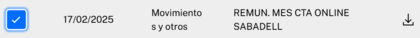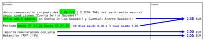 Pues muy bien por tratar de ver tu liquidación de ene-25, aunque los intereses brutos que te correspondieran fueran 0,00 €, pero lástima que ni lo hayas podido ver (que te salga todo en gris); claro que si ese documento comentas que es "REMUN. MES CTA ONLINE SABADELL" y que fue generado en fecha del 17.03.2025, por su fecha generación está clarísimo que se refiere a la liquidación del mes vencido inmediatamente anterior, febrero, vaya.