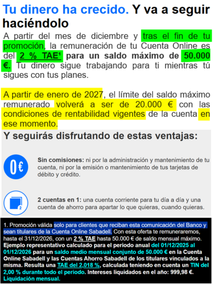 Re: Promoción Cuenta Online Sabadell. 300 €, 2,5% TAE y 3% en recibos. ¡FIN DE PROMOCIÓN! Hasta el 31/01/25